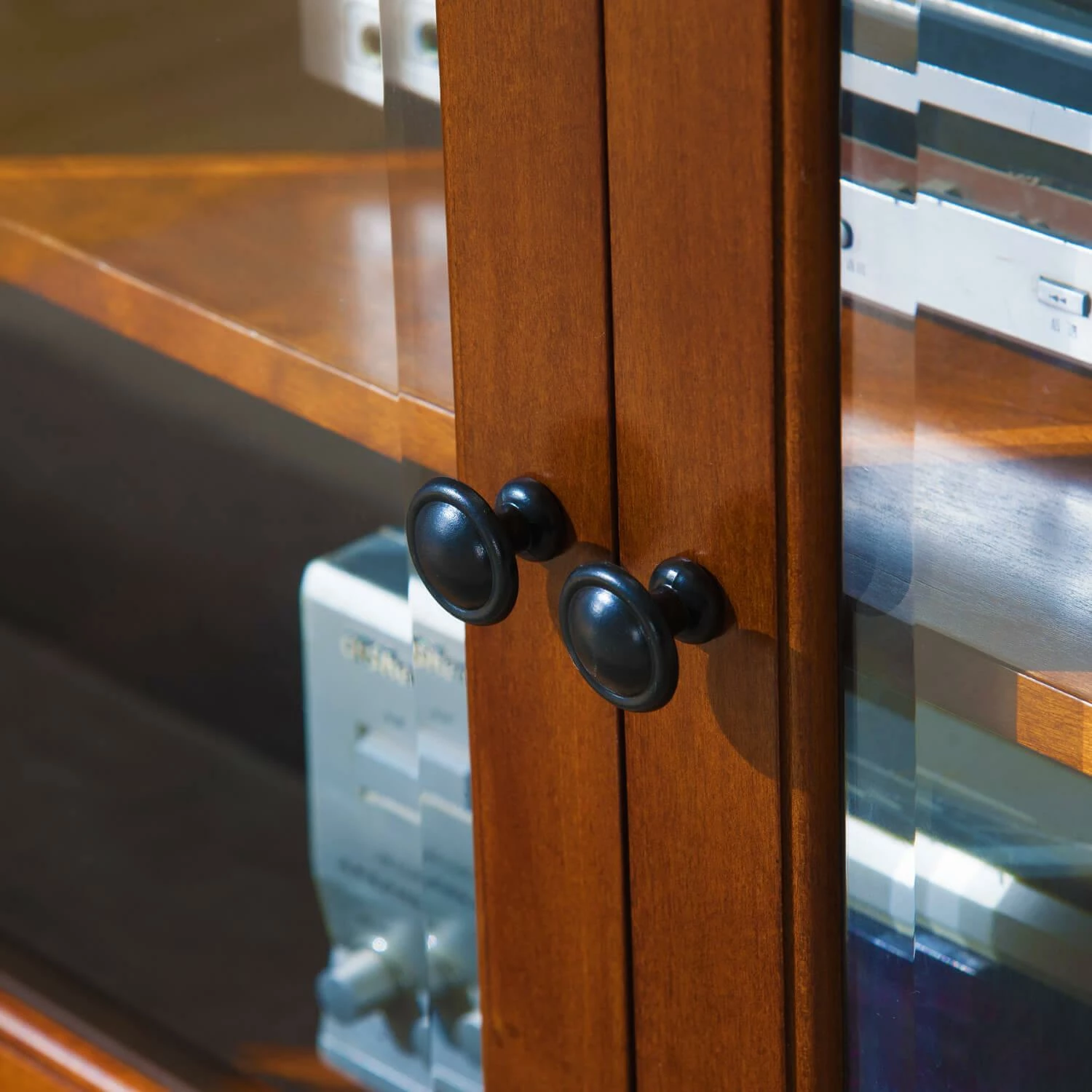 The Westwood Cherry 60inch TV Corner Console with Storage provides a fashionable home for TVs up to 60inch with its rich, westwood cherry finish and classic, raised panel design. Storage opportunities abound with adjustable shelves behind the tempered glass doors and media cabinets for enhanced flexibility. Constructed of solid wood and wood veneers this TV stands features include cord management slots in the back, blackened hardware, and sturdy cabinets that will tidy up and store things out of view. Designed and manufactured by Leick Home, the trusted source for quality home furnishings for every taste and budget.